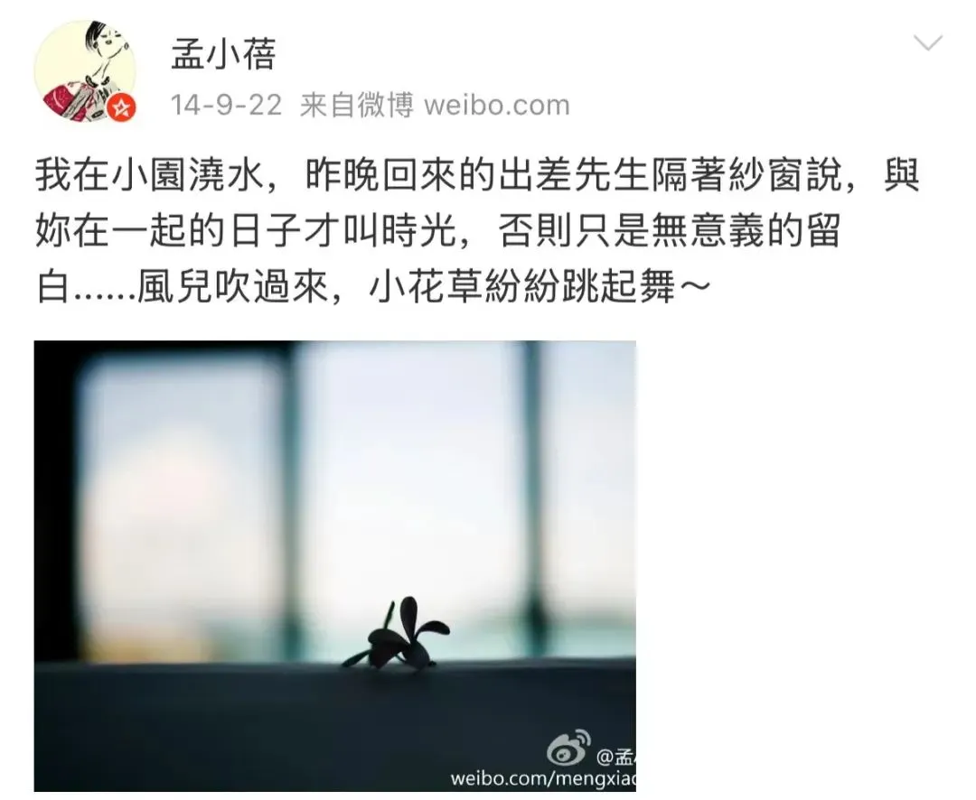 住在没有窗户的出租屋里,收入拮据,孟小蓓依旧不离不弃,陪他度过这段低谷期,甚至没有要求一场像样的婚礼。