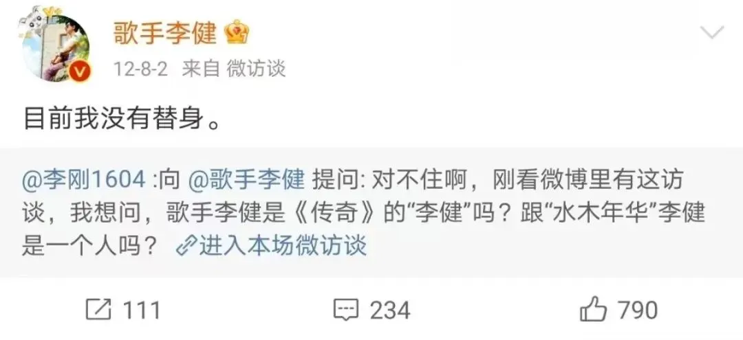 早些年因为一首《传奇》再度翻红,有观众发现他的名字莫名眼熟,询问和当年「水木年华」组合里的李健是一个人吗?
