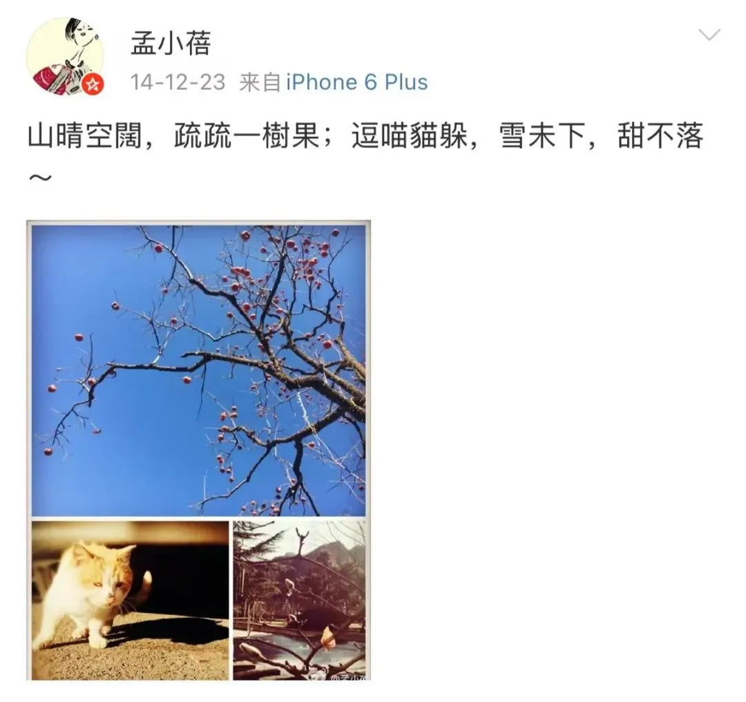 名利双收后,孟小蓓依旧保持着从前淡然的生活习惯。
